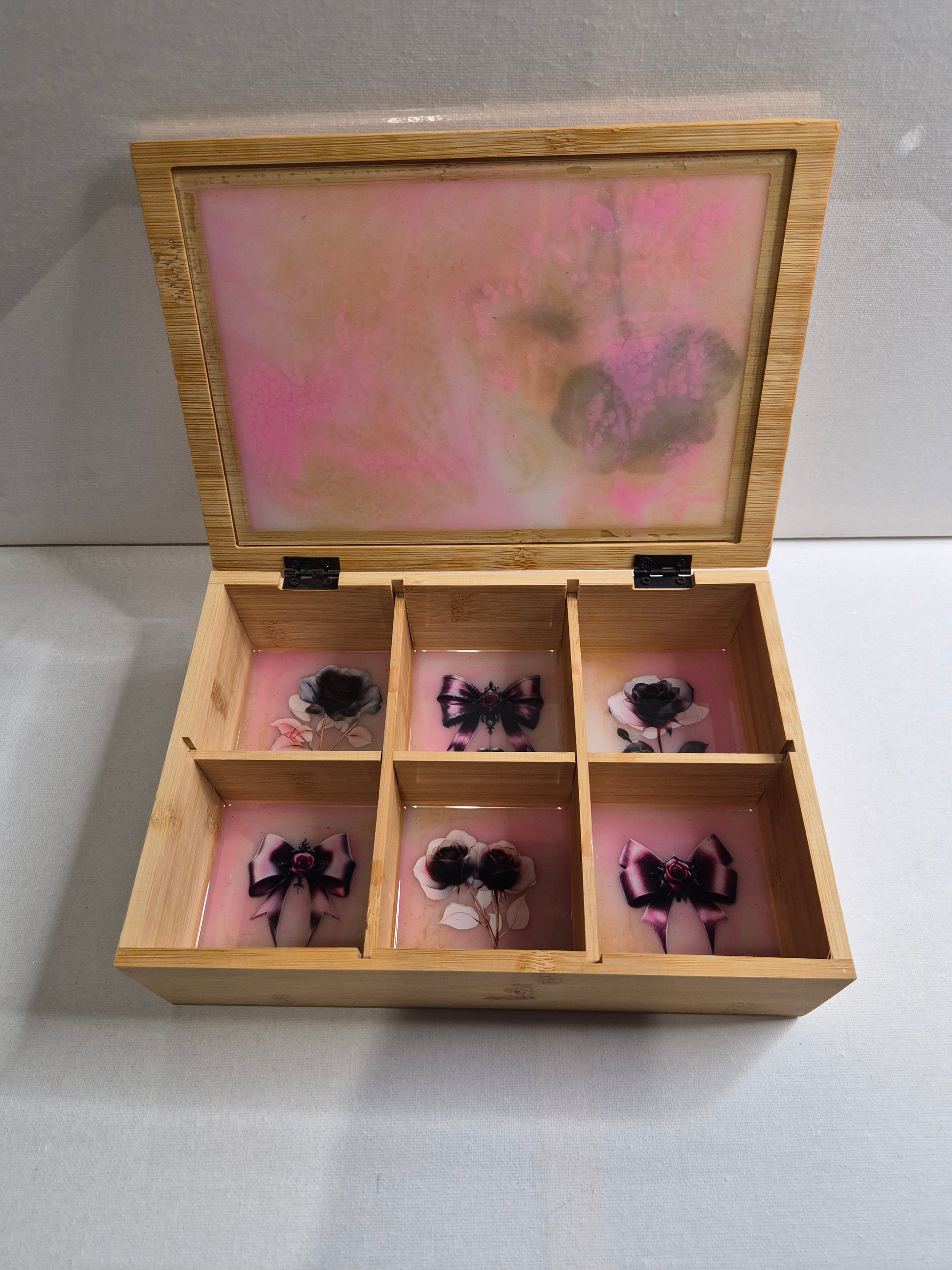 Boite a bijoux ou pourtour autre rangement en bois et resine 26 cm par 16 environ