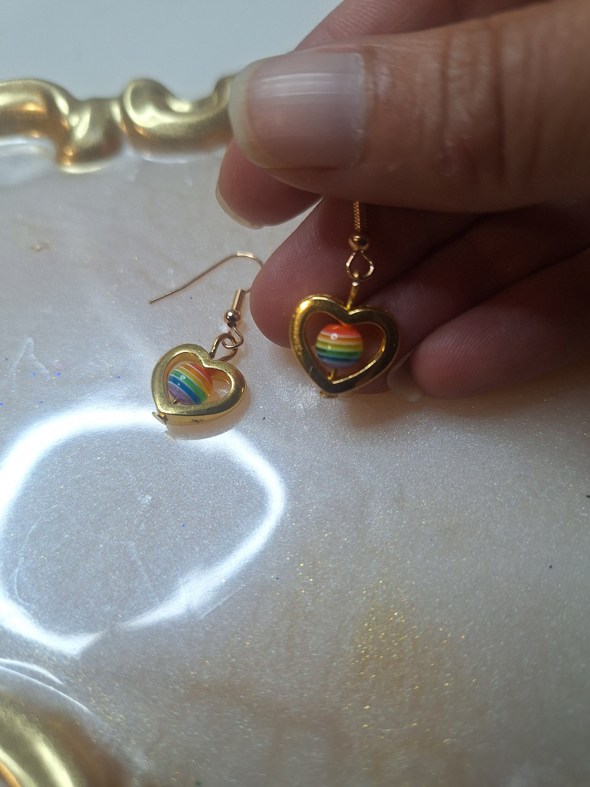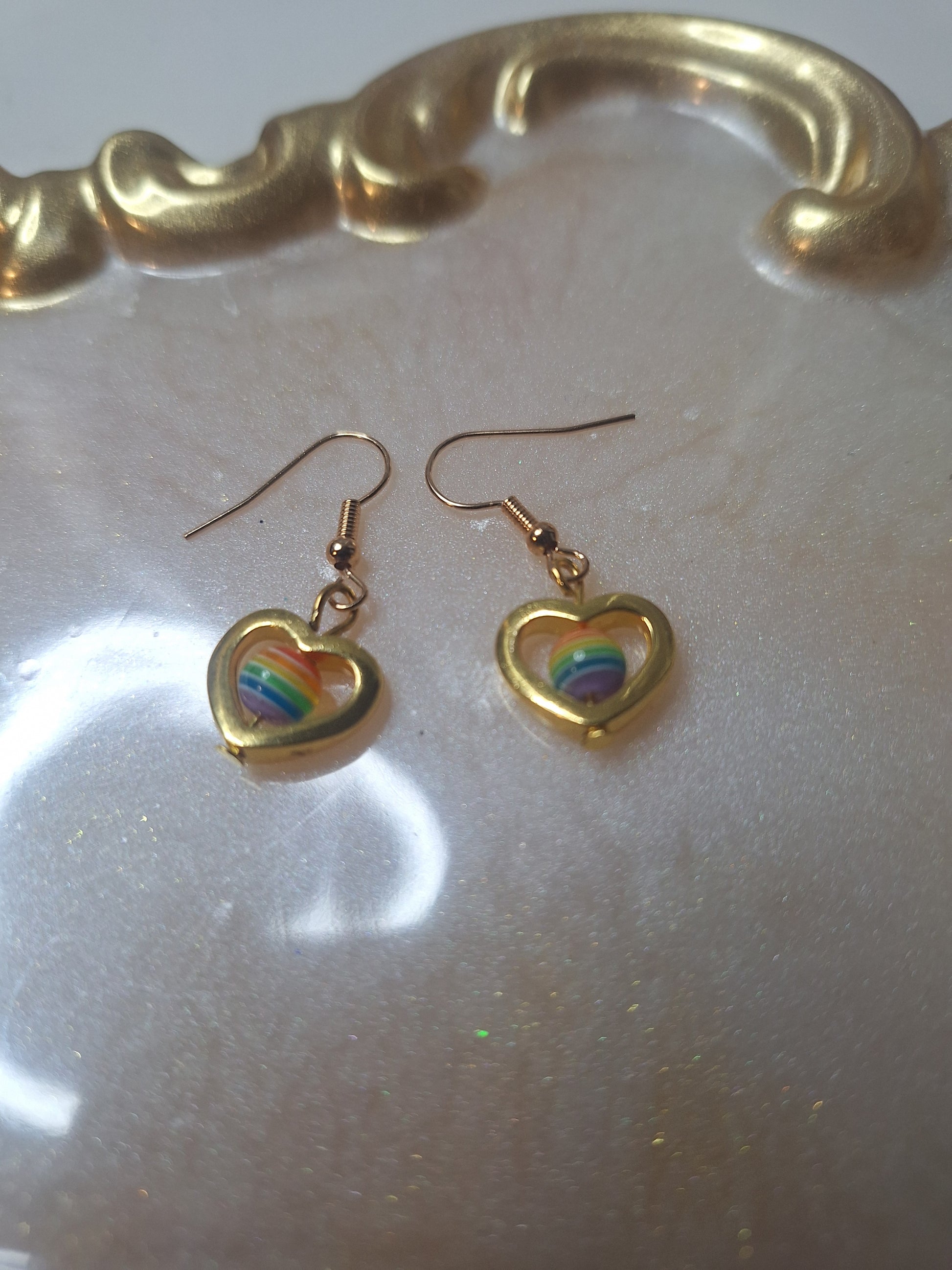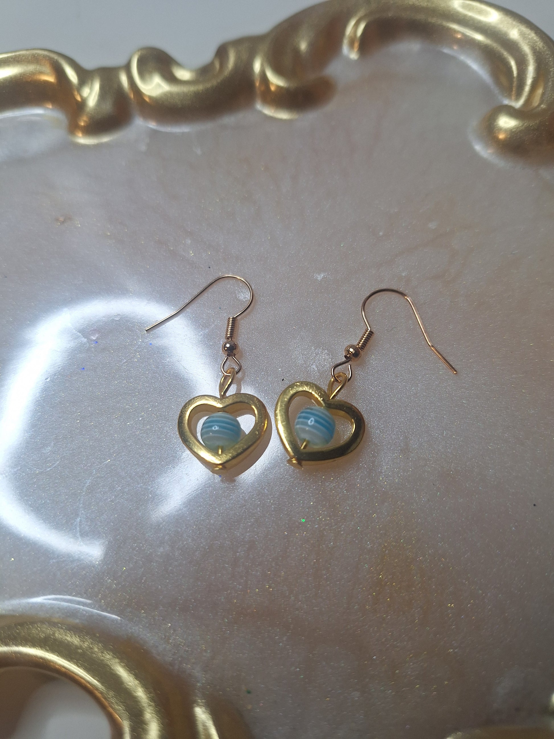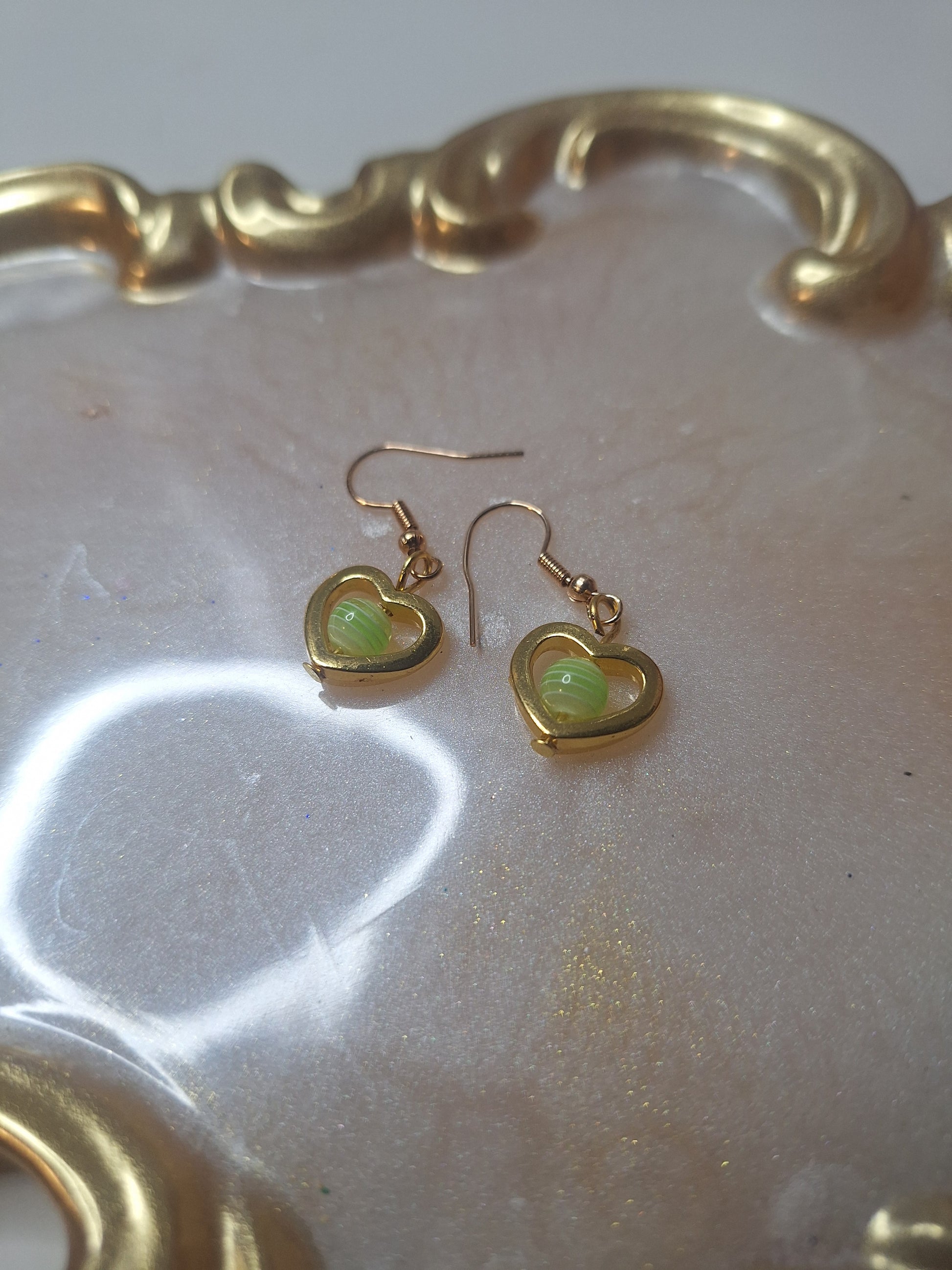 Boucle d oreille en forme de cœur doré avec sa perle en différentes couleurs au choix