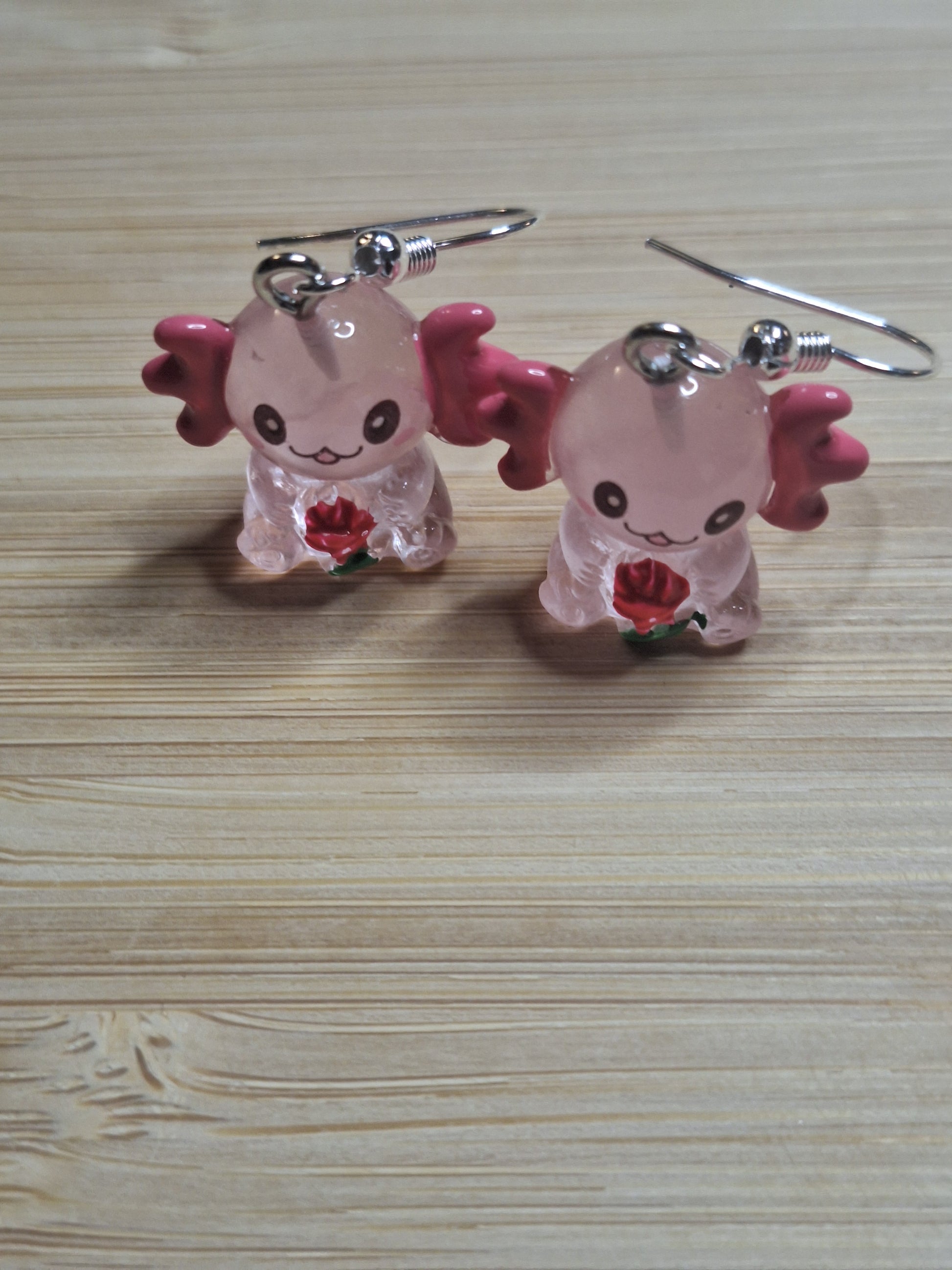 Boucles d'oreilles axolotl deux variables : avec son coeur et avec sa fleur