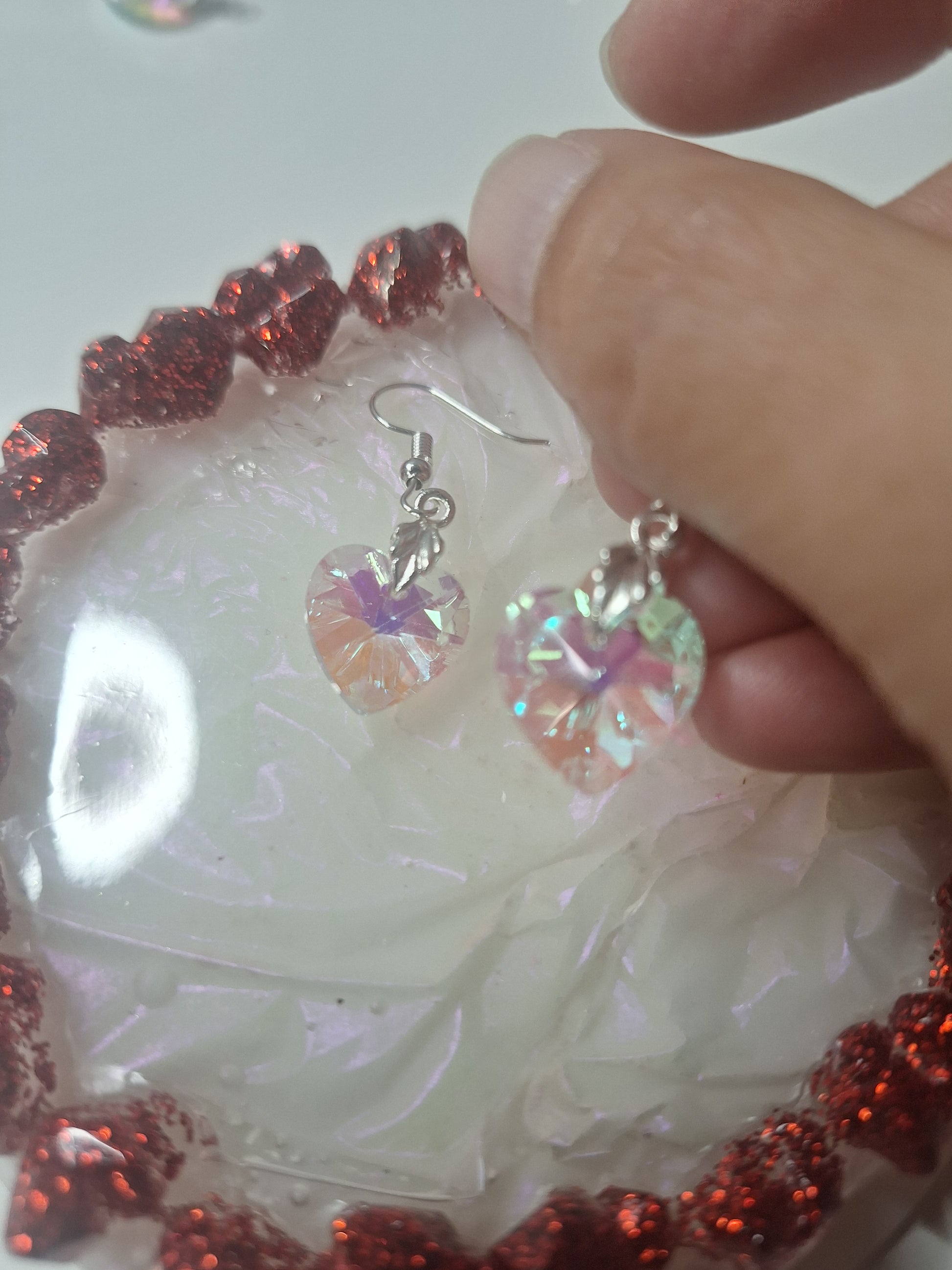 Boucles d'oreilles coeur se déclinent en plusieurs couleurs bleu vert lilas transparent irisé et caméléon