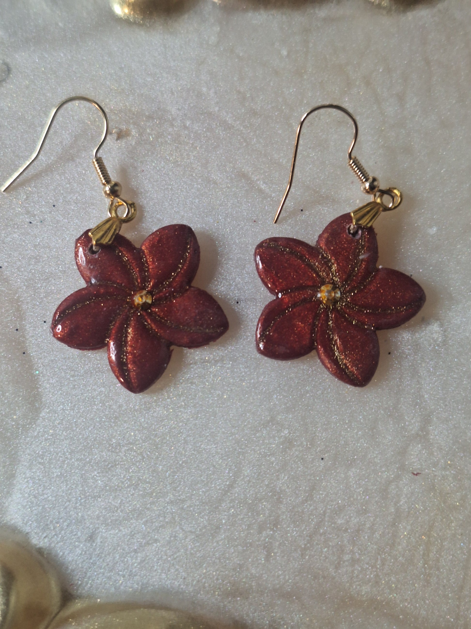 Boucles d'oreilles fleur de tiare en pâte polymere avec de la resine anti uv pour une meilleure tenue dans le temps se décline en plusieurs couleurs