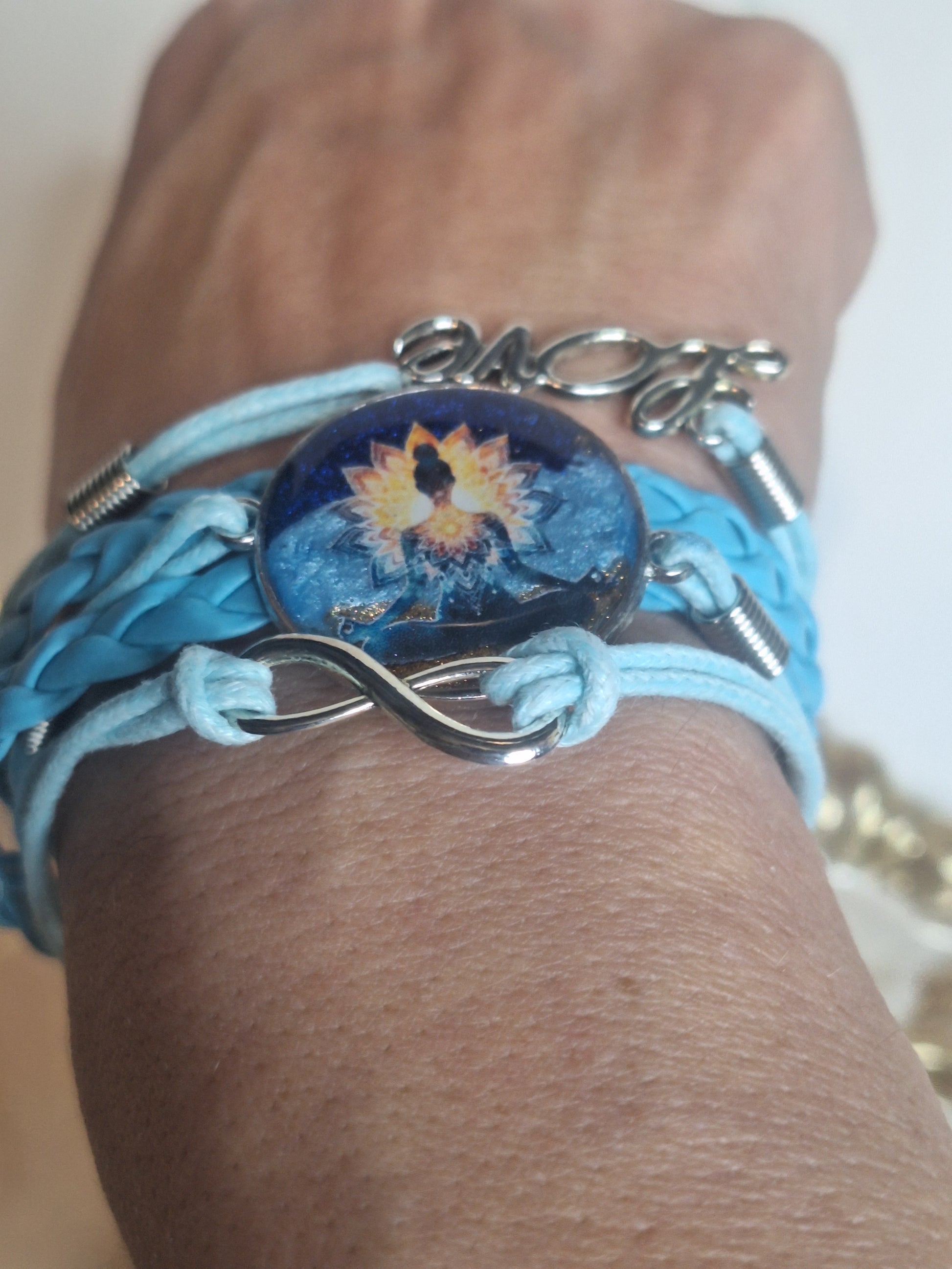 Bracelet bleu et blanc insert yoga dégradé de bleu bleu marine et dore
