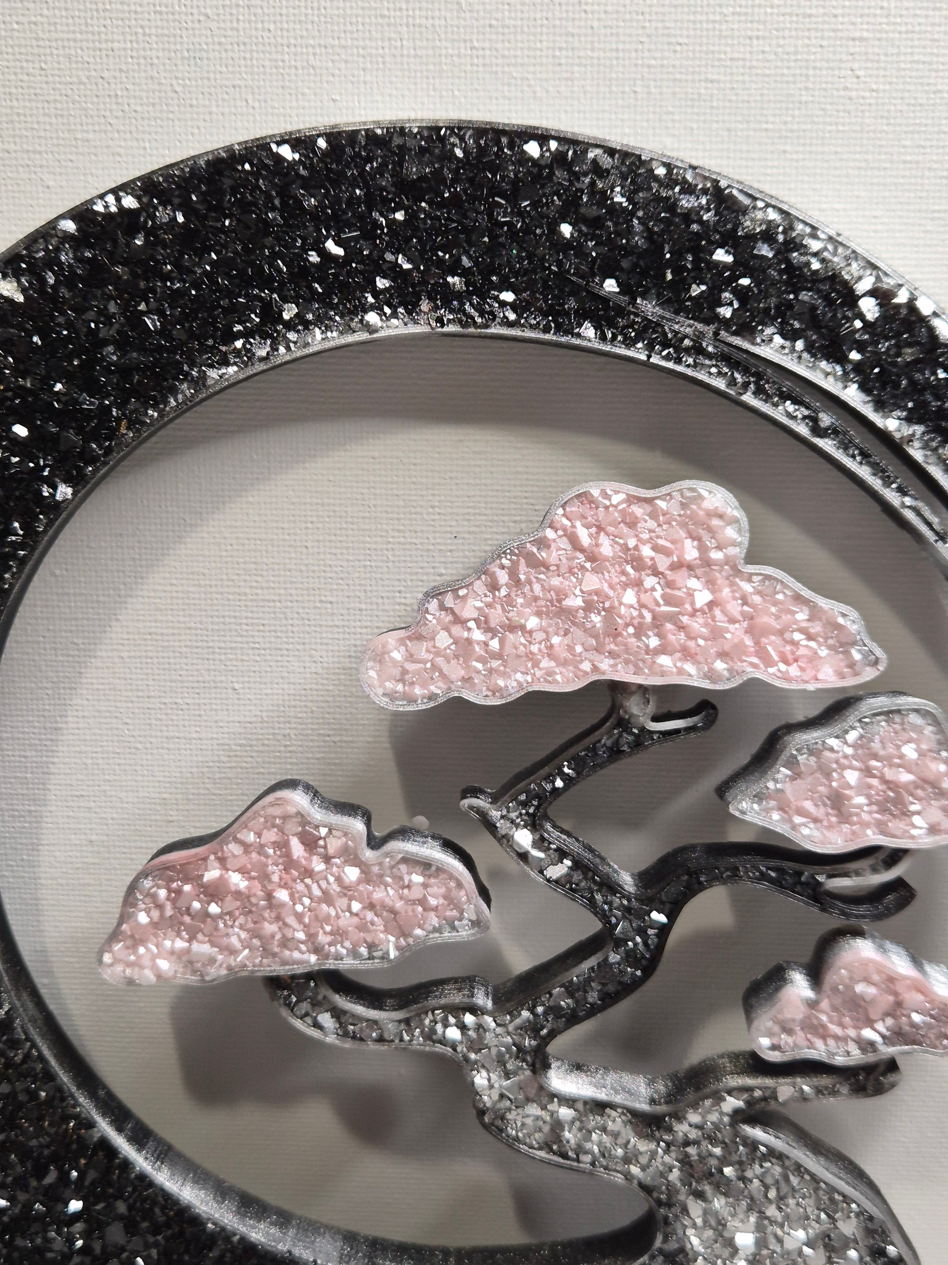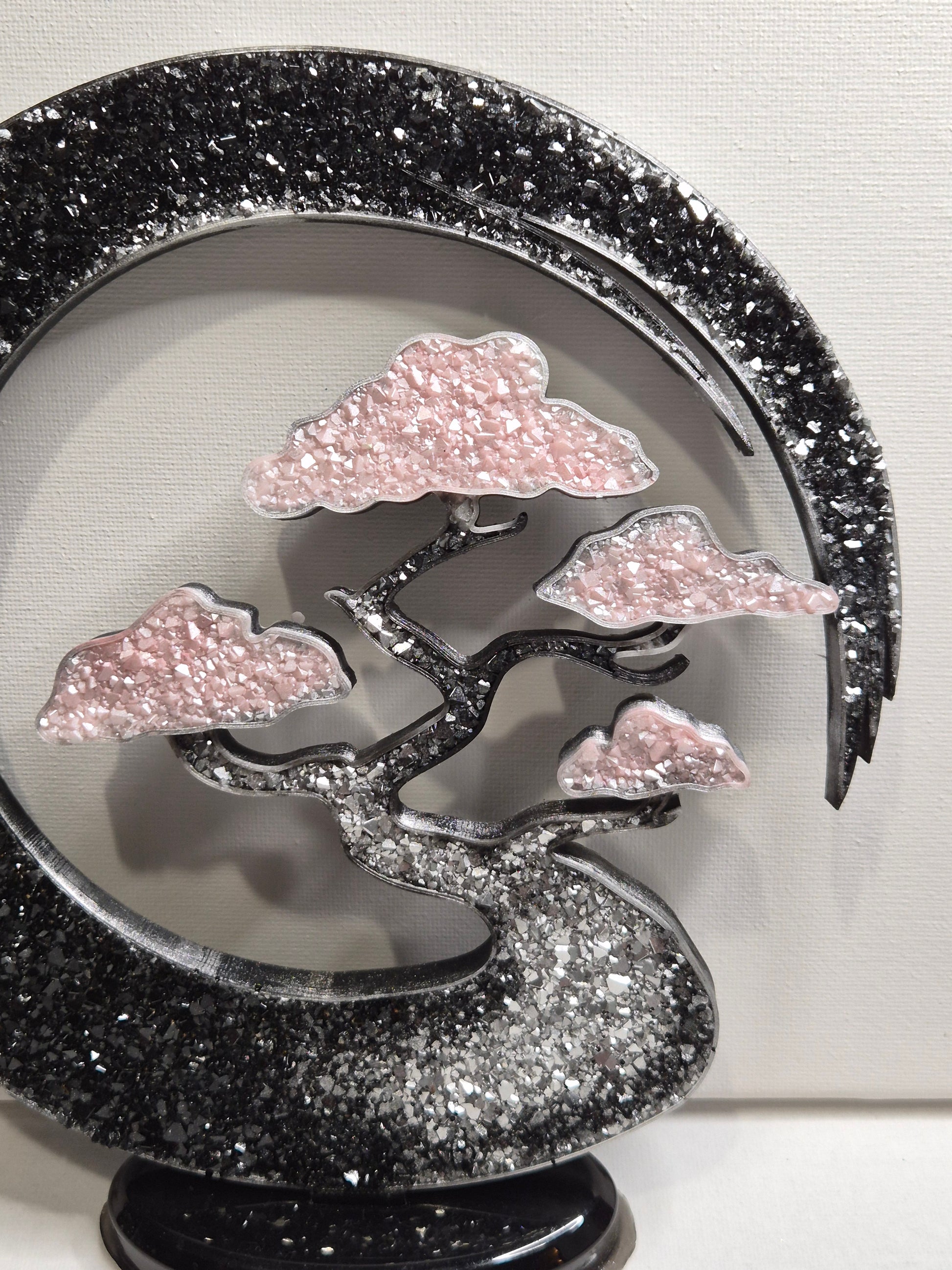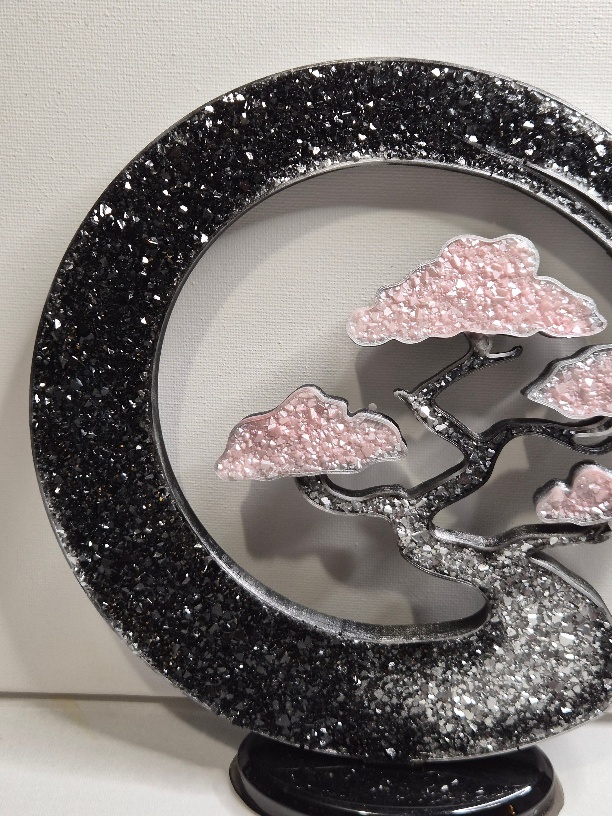 Deco thème bonsai rose argenté et noir effet diamant environ 20 cm de diamètre