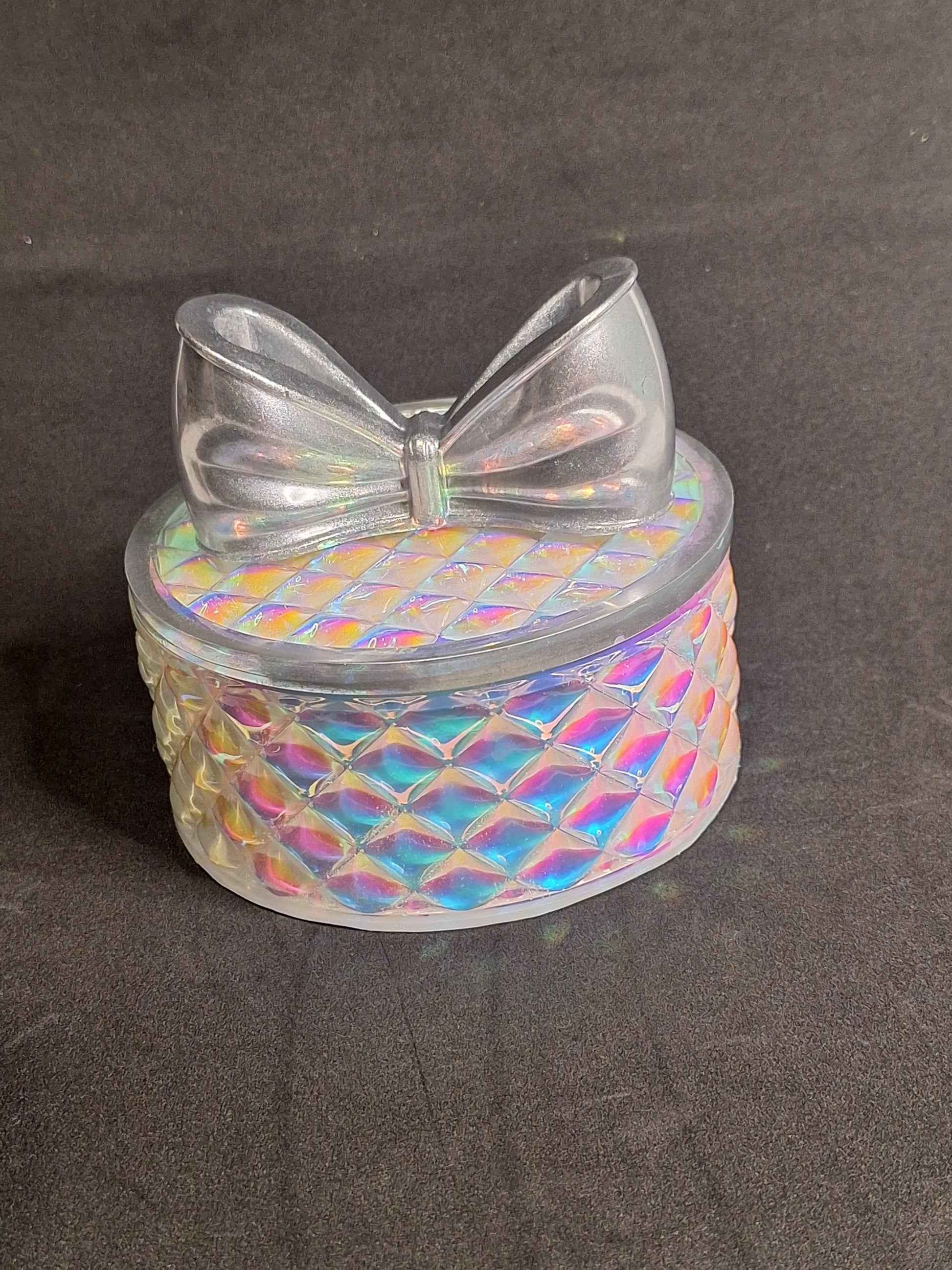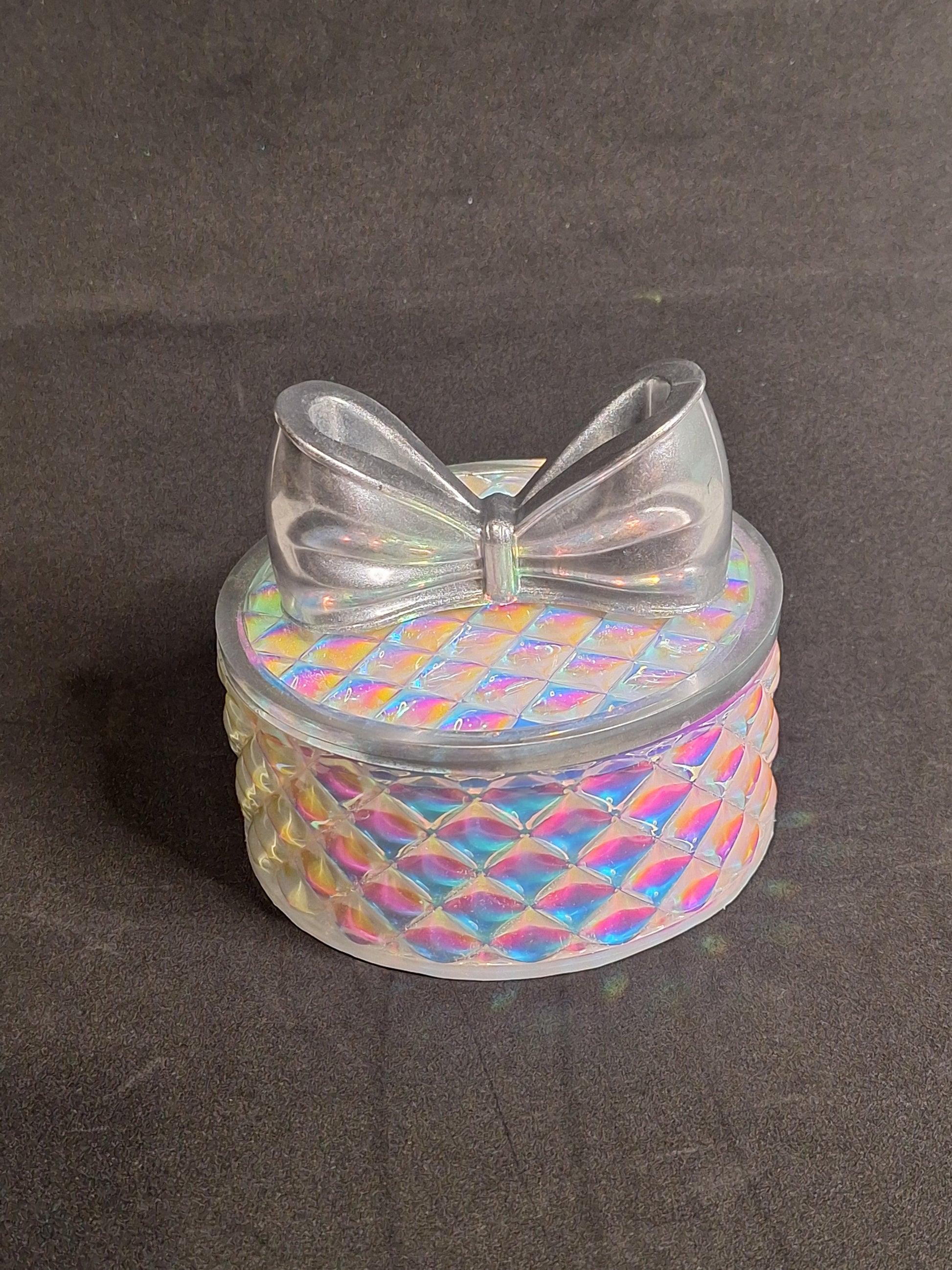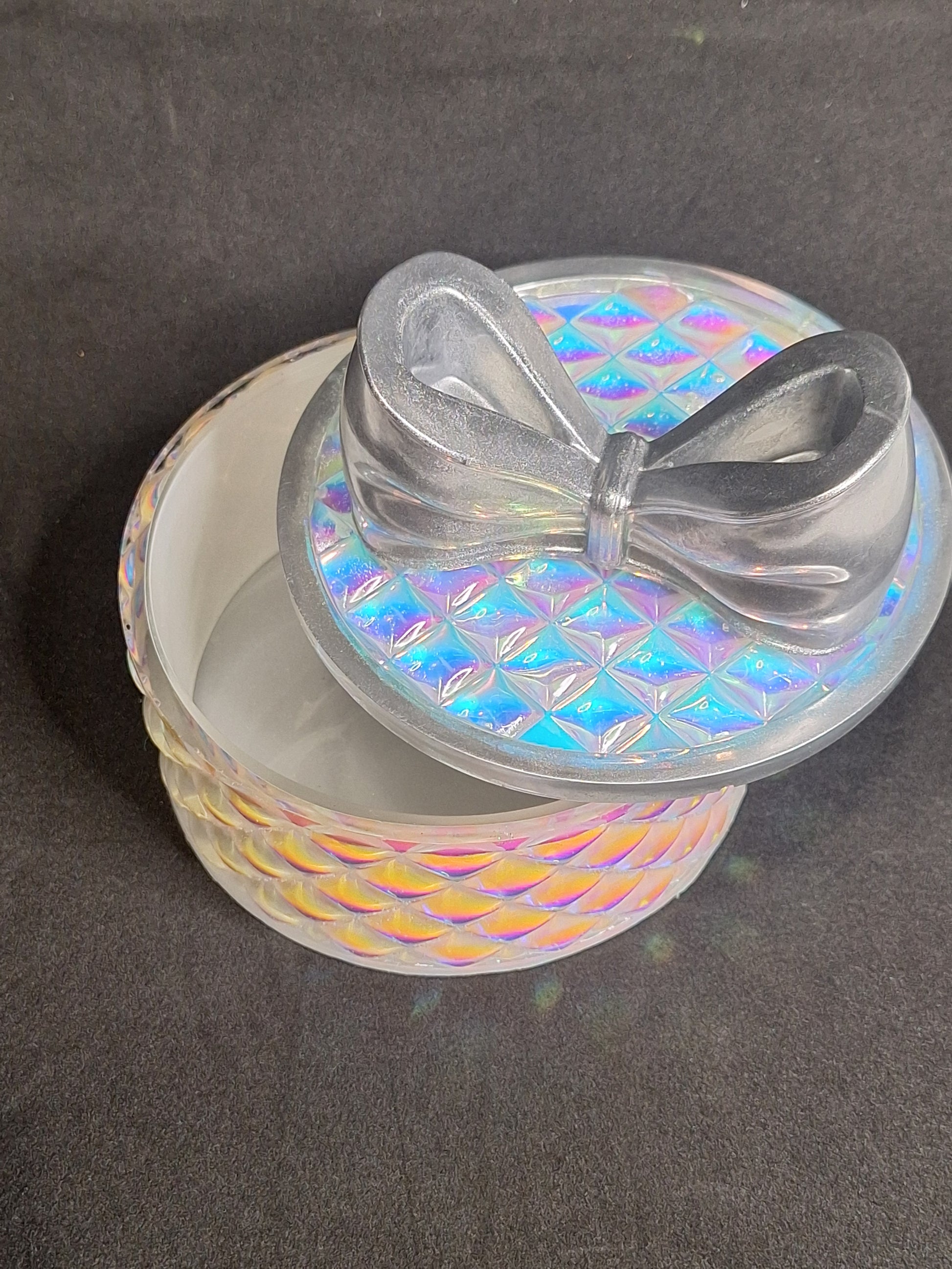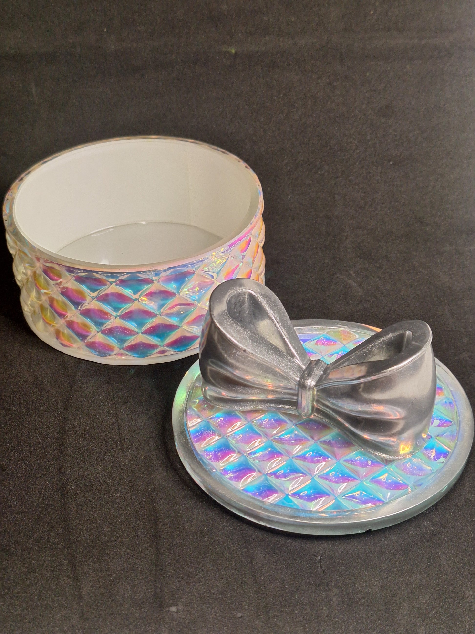 Vide poche effet matelasse avec noeud argenté couleur holographique a prédominance bleu